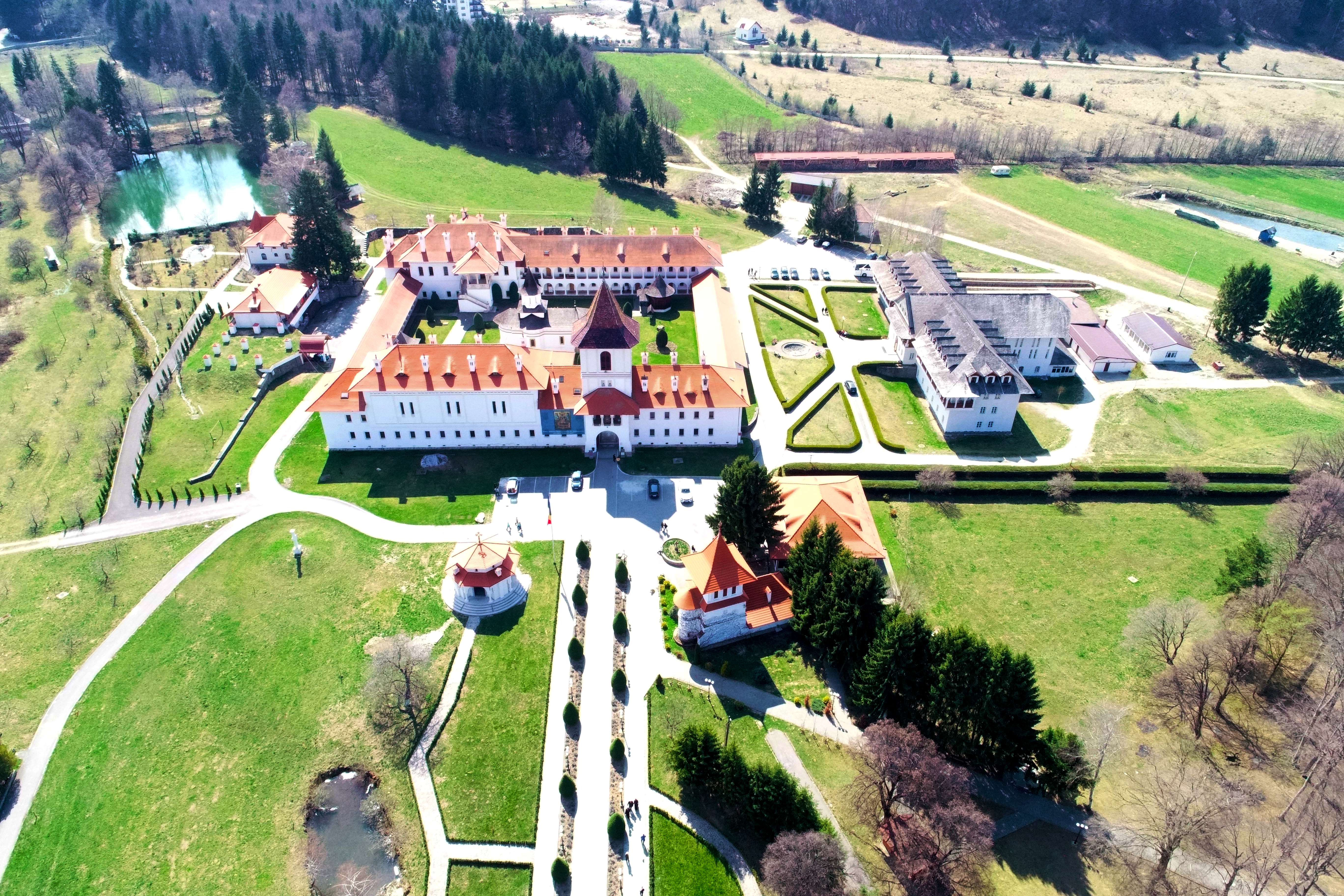În cele doua aripi, pe trei si respectiv patru nivele sunt amplasate camerele de cazare, cele de la etaj având balcon cu vedere spre "Ferestrele" Muntilor Fagaras. În holul mare sunt gazduite expozitii temporare ale artistilor plastici sau participantilor la conferinte.