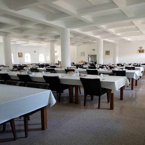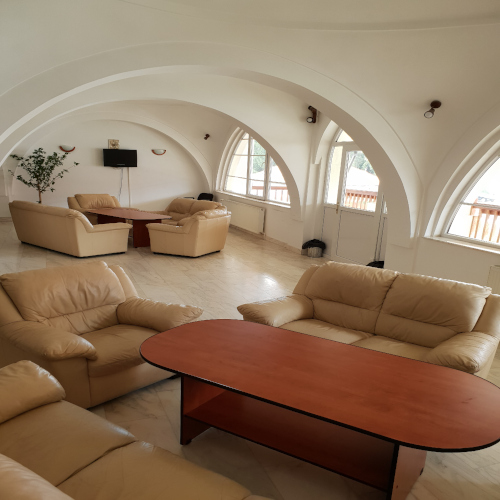 Sala de conferinta, cu loja si camera pentru traduceri simultane, este dotata cu aparatură electronică ultramodernă, computere, sistem de sonorizare si videoproiectie. Exista aici camere tip apartament sau simple cu doua sau trei paturi, mobilate cu gust, dispunând fiecare de toaleta cu apa calda permanent.
